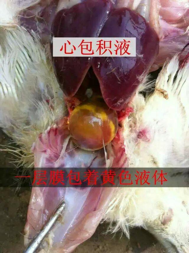 近來在山東、河南、安徽等地發(fā)生一種以心包積液為特點的死亡病癥,發(fā)病無特征,整籠死亡,添加抗菌藥物治療加速,死亡率高達10%--90%,以肉食雞、三黃雞、麻雞為主,有死亡高峰期,蛋雞目前發(fā)病較低。