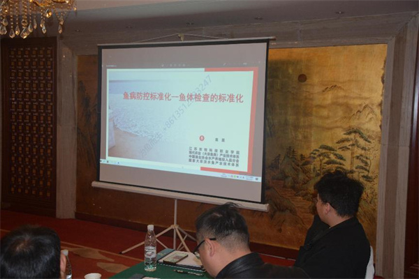 在銷售人員作完工作報告后,參會人員一同觀看了公司技術顧問袁圣老師關于《魚病防控標準化—魚體檢查的標準化》的技術講座視頻,袁圣老師的技術講座,既有各種魚類疾病的現(xiàn)場診斷,又有大量充分的實驗室數(shù)據(jù),理論結合實際,細致全面、準確到位,極大地豐富了參會人員的專業(yè)知識,使大家受益匪淺。