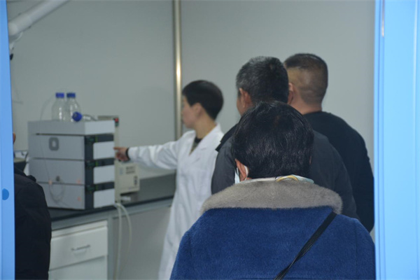 接下來歐美華團隊參觀了公司廠區(qū)、新GMP車間、化驗室和研發(fā)中心。公司質(zhì)控部經(jīng)理庚承芳向大家介紹了產(chǎn)品生產(chǎn)的各個環(huán)節(jié),從設備功能、生產(chǎn)工藝、環(huán)境要求等多方面向大家進行了詳細的講解。在新GMP車間,歐美華團隊現(xiàn)場觀摩了產(chǎn)品的生產(chǎn)過程,對潔凈的車間環(huán)境、高效的生產(chǎn)過程、嚴格的質(zhì)量把控等印象深刻、連連稱贊。在化驗室和研發(fā)中心,歐美華團隊對公司雄厚的的技術研發(fā)力量和先進的實驗設備贊嘆不已。