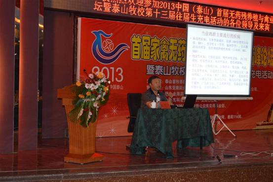 山東省畜牧獸醫(yī)局張洪本副局長就山東省家禽業(yè)發(fā)展現狀、面對的困難向與會人員做了通報,他鼓勵各單位應積極應對困難,做好本職工作,加大宣傳投入,對謠言、謬論及誹謗進行堅決駁斥。崔治中教授重點介紹種雞白血病凈化的必要性和關鍵技術。常維山教授就雞氣囊炎的發(fā)病機理和仿制要點進行了精彩講解。唐兆新教授介紹了疫苗的分類、保存方法,并分析了造成免疫失敗的主要原因。劉思當教授憑借豐富的臨床知識介紹了當前雞病的主要流行動態(tài),并就多個知識點表達了與其他老師不同的看法。趙繼勛教授重點就H7N9病毒的傳播、防治及未來走向表達了自己的觀點。劉治西教授就標準化肉雞養(yǎng)殖的關鍵技術與大家分享,并用大量數據公式證明了細節(jié)決定成敗的管理精髓。秦卓明研究員就水禽疾病流行動態(tài)及防控措施進行了精彩講解。楊小勇博士就中藥在養(yǎng)禽中的應用思路及進展進向大家進行通報,并當場給出4個中藥配方,贏得了陣陣喝彩。贊助企業(yè)也派出實力派講師,就如何解決基層問題以及無藥殘養(yǎng)殖的難點與大家認真交流。學校優(yōu)秀畢業(yè)生馬玉寶、孟濤就職業(yè)生涯中的經歷、經驗和心得毫無保留的匯報給了領導和參會代表,把會議氣氛推向高潮。